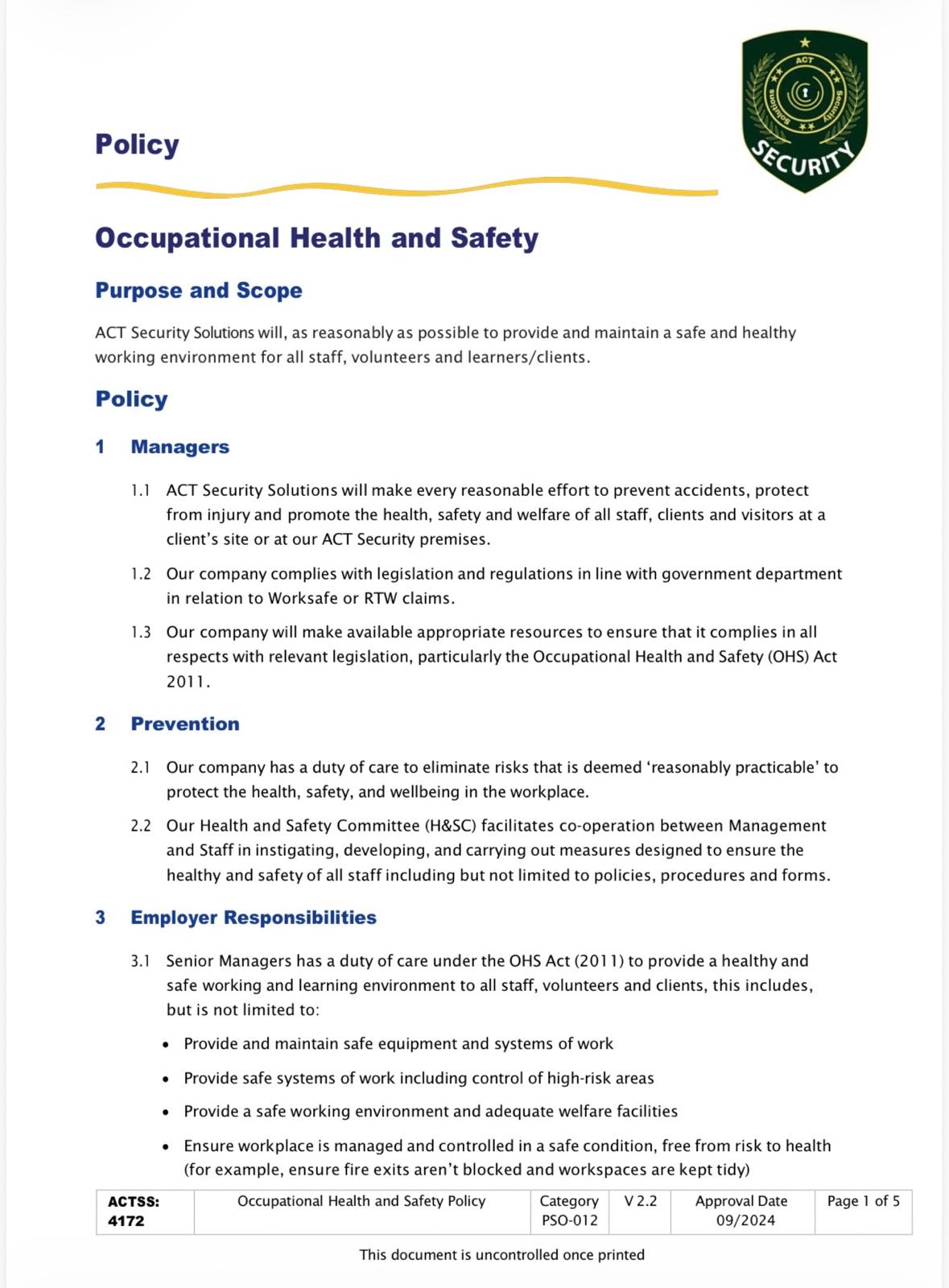 We ensure every officer deployed is fit, trained and compliant.