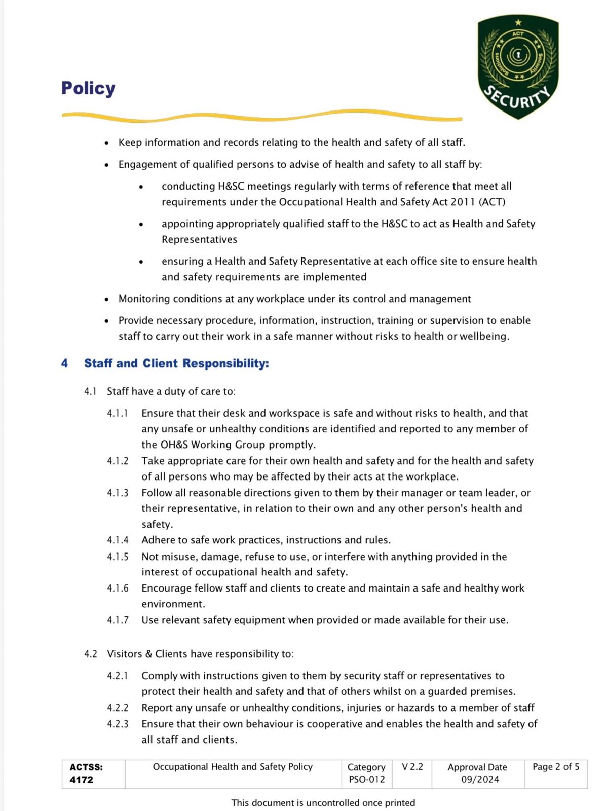 - Valid Security Licences (ACT / NSW)